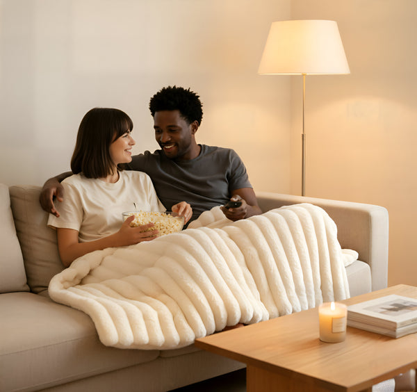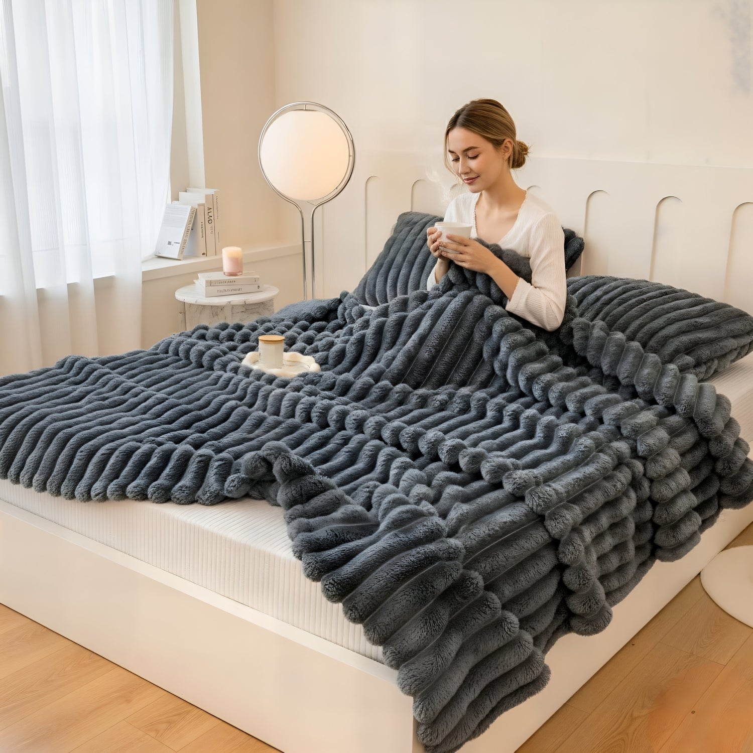 Unsere Velvet-Decke verbindet voluminöse Weichheit mit butterweicher Haptik – für sofortige Wärme ohne Hitzestau. Die edle Streifen-Textur verleiht deinem Raum Hotel-Feeling, während das Anti-Fussel-Finish Kleidung und Sofa sauber hält. Maschinenwaschbar und farbstabil für den Alltag. Erholsame Abende, ruhigere Nächte, ein Zuhause, das fertig wirkt.